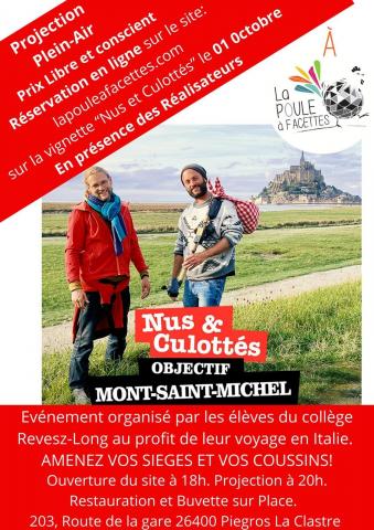 Une projection en plein air, en présence des réalisateurs, du documentaire "Nus & Culottés, objectif Mont-Saint-Michel" est organisée mercredi 1er octobre à La Poule à facettes !