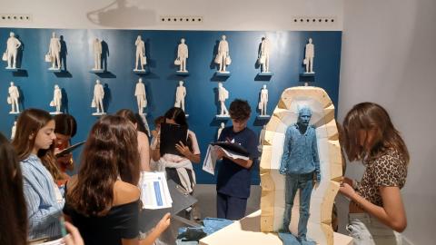 "En septembre, nous nous sommes rendus au centre d’art voir l’exposition des sculptures de Bruno Catalano. A l’intérieur du centre d’art, nous avons pu déambuler librement tout autour des œuvres. Marie Girard, la responsable de l’exposition, nous a accueillis puis, nous a expliqué les étapes de fabrication des sculptures en bronze. Nous avons aimé la présentation et l'autoportrait du sculpteur posé en haut d’une pile de valises" Les élèves de 5ème E