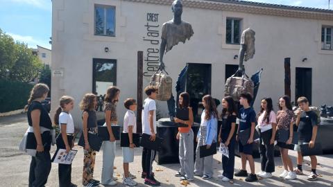 Huit classes du collège ont pu visiter l’exposition « Traversée commune » des sculptures de Bruno Catalano au Centre d’Art de Crest.